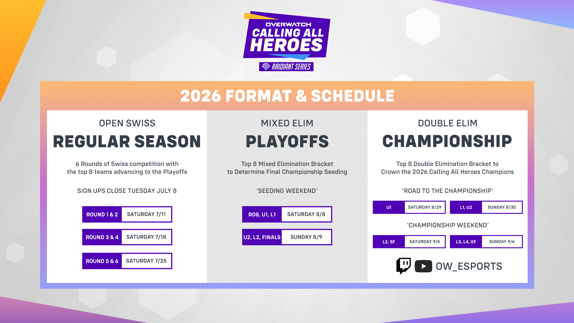 Sign up here to register for the 2026 Calling All Heroes Raidiant Series Regular Season