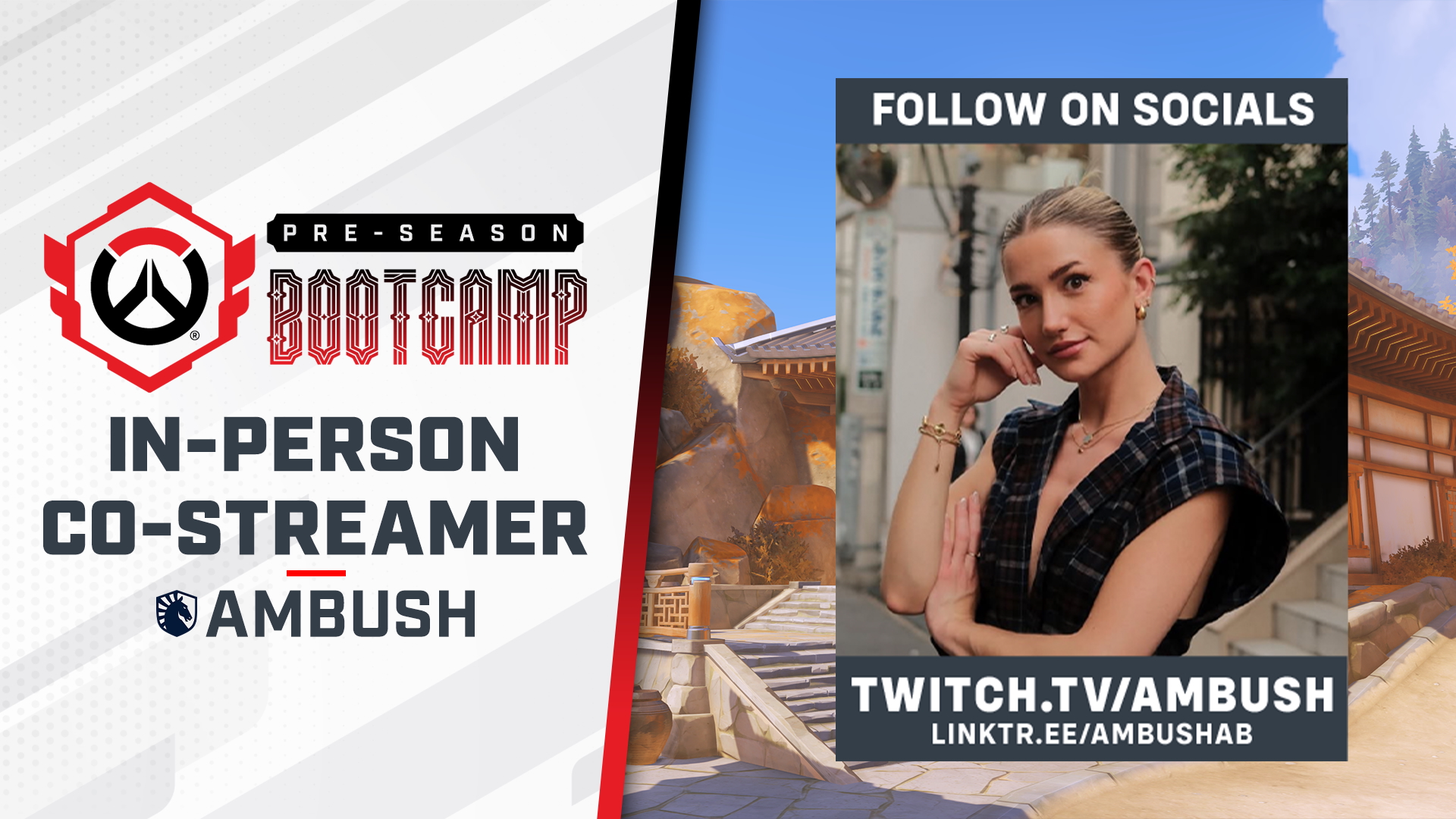 You’ll be able to follow the whole week’s worth of Bootcamp action thanks to our amazing suite of Overwatch Co-Streamers! Leading the charge is TL Ambush, who will be coming at you live from T1 HQ with IRL streams, content with your favorite OWCS players, and more. Follow Ambush on all her pages (and ours) for more info!