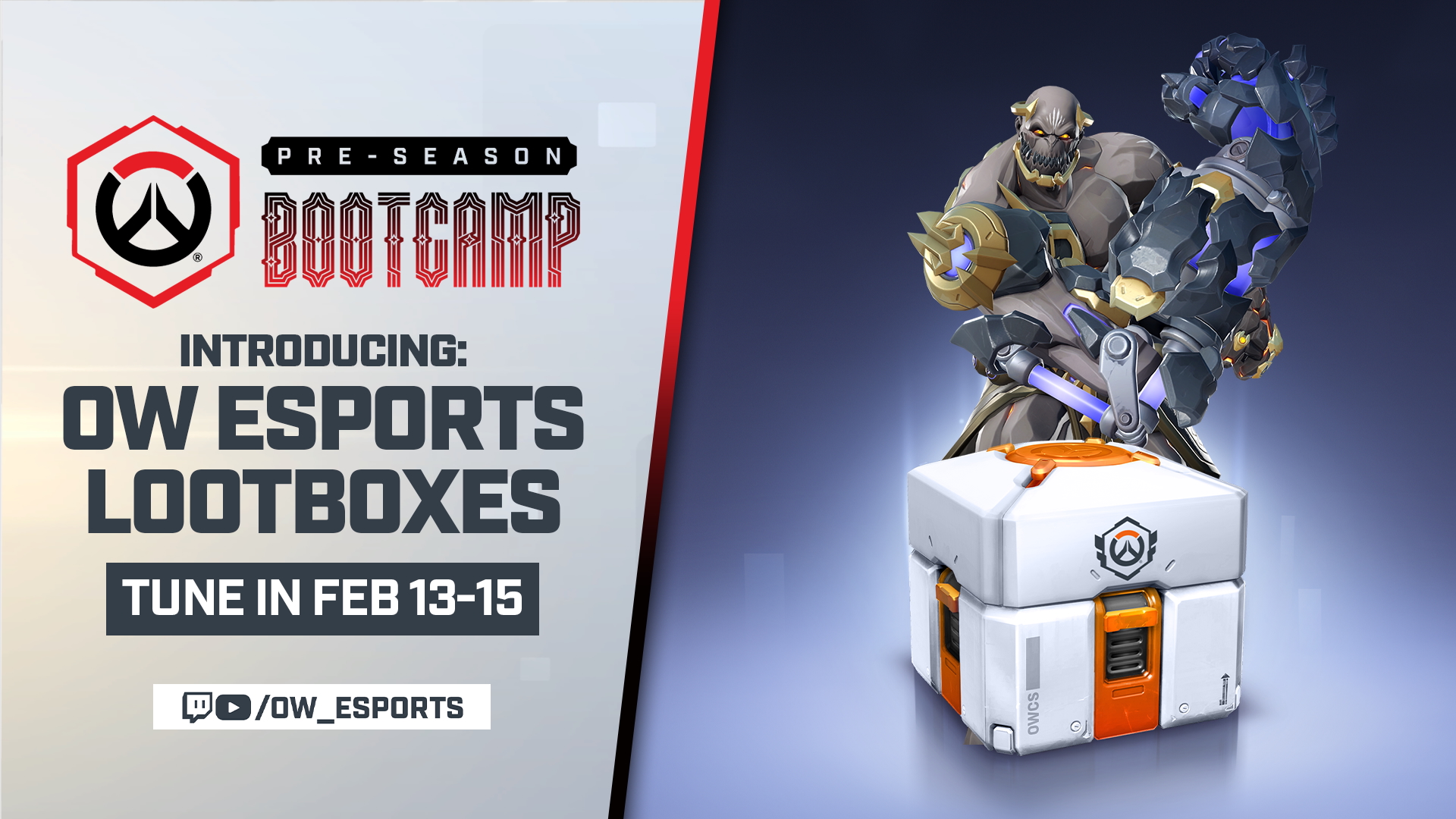 We’ll be giving away two sets of in-game loot to commemorate the Pre-Season Bootcamp Tournament. Tune in on Feb 13 and 14 to earn the following rewards, including our new Overwatch Esports lootboxes and our first ever in-game title for Esports!