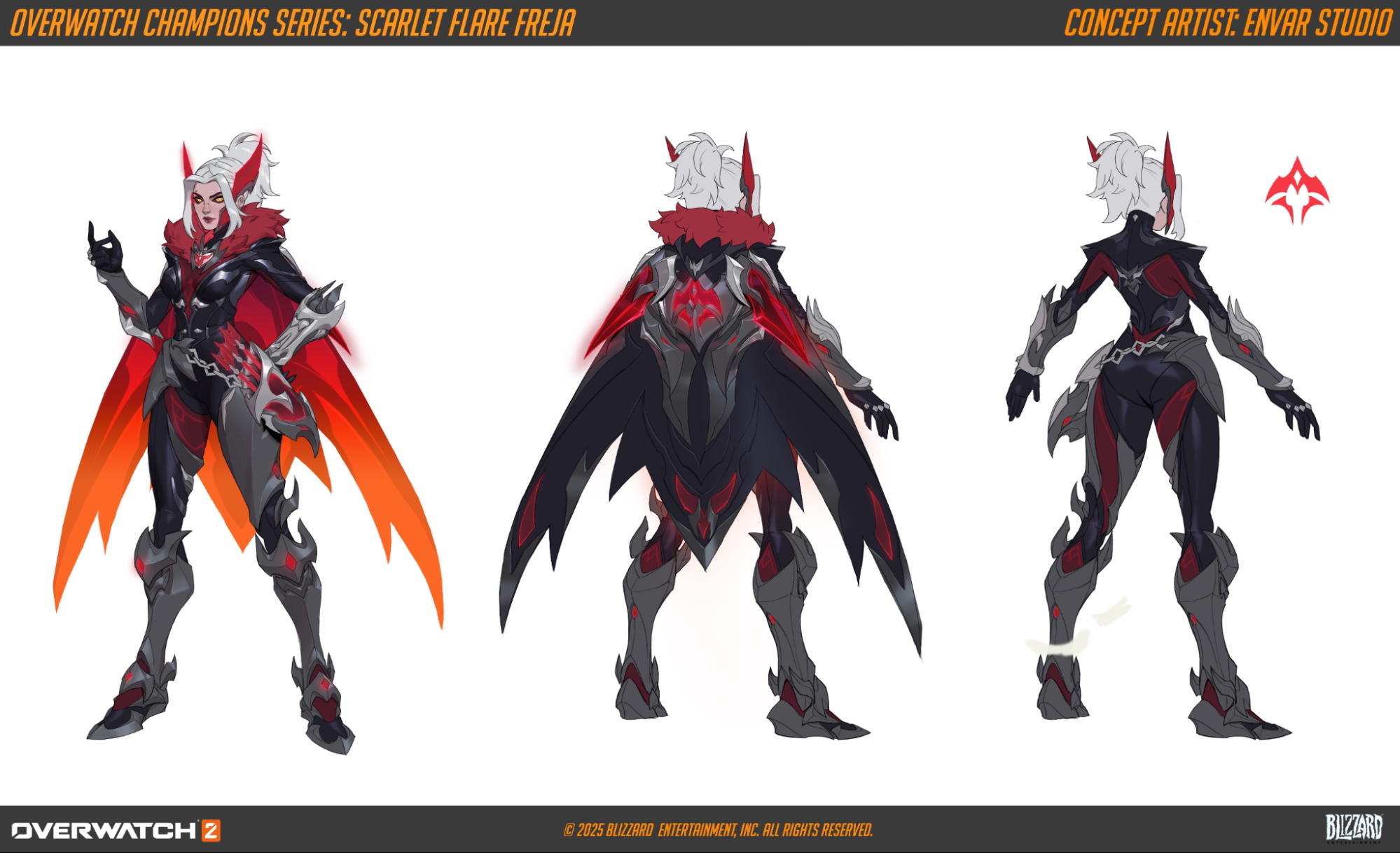 Scarlet Flare Freja leads the trio of Heroes with a fiery flourish, representing the burning heart of competition that’s so crucial to the OWCS ethos. Joining her are Scarlet Ember Juno and Scarlet Angel Mercy, who have taken on the colors of the winning OWCS region at both Champions Clash (Crazy Raccoon - OWCS Asia) and Midseason Championship (Team Falcons - OWCS Asia).